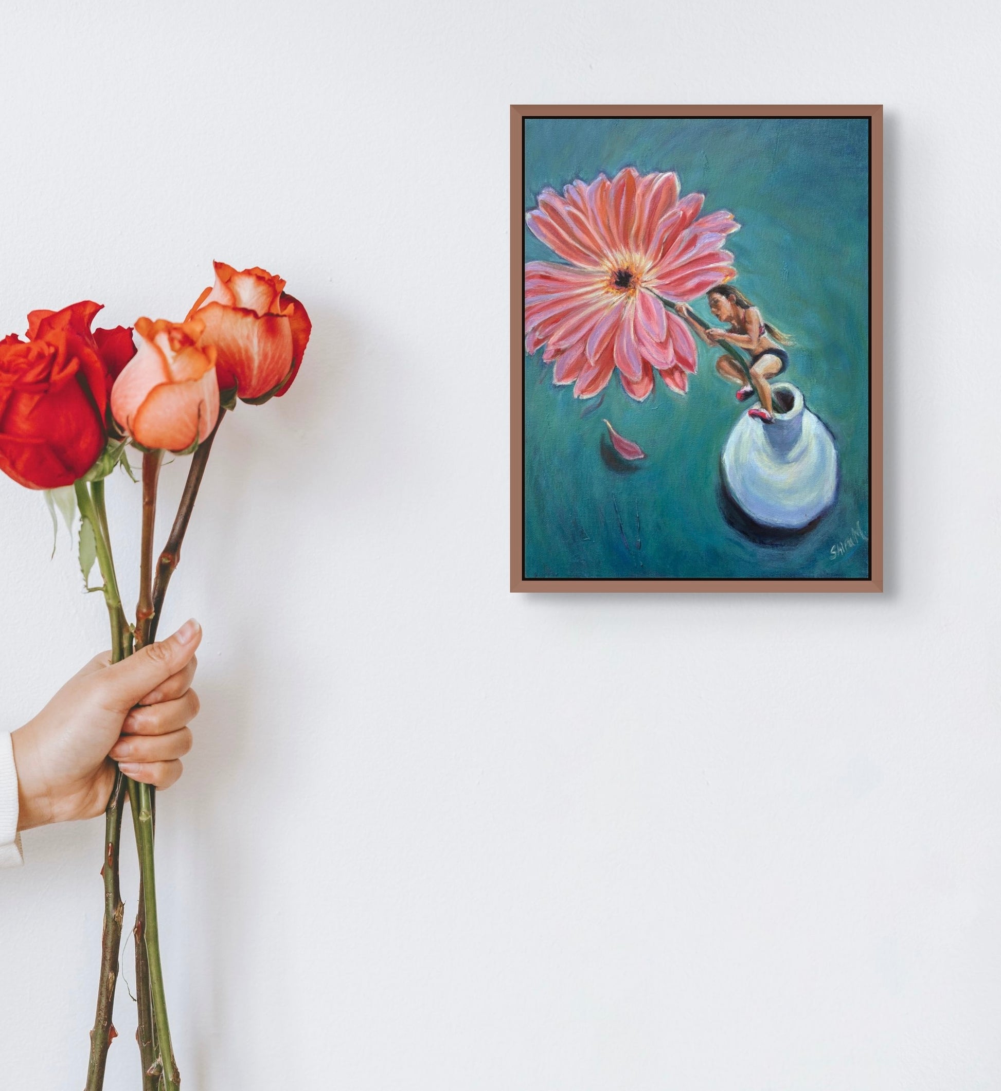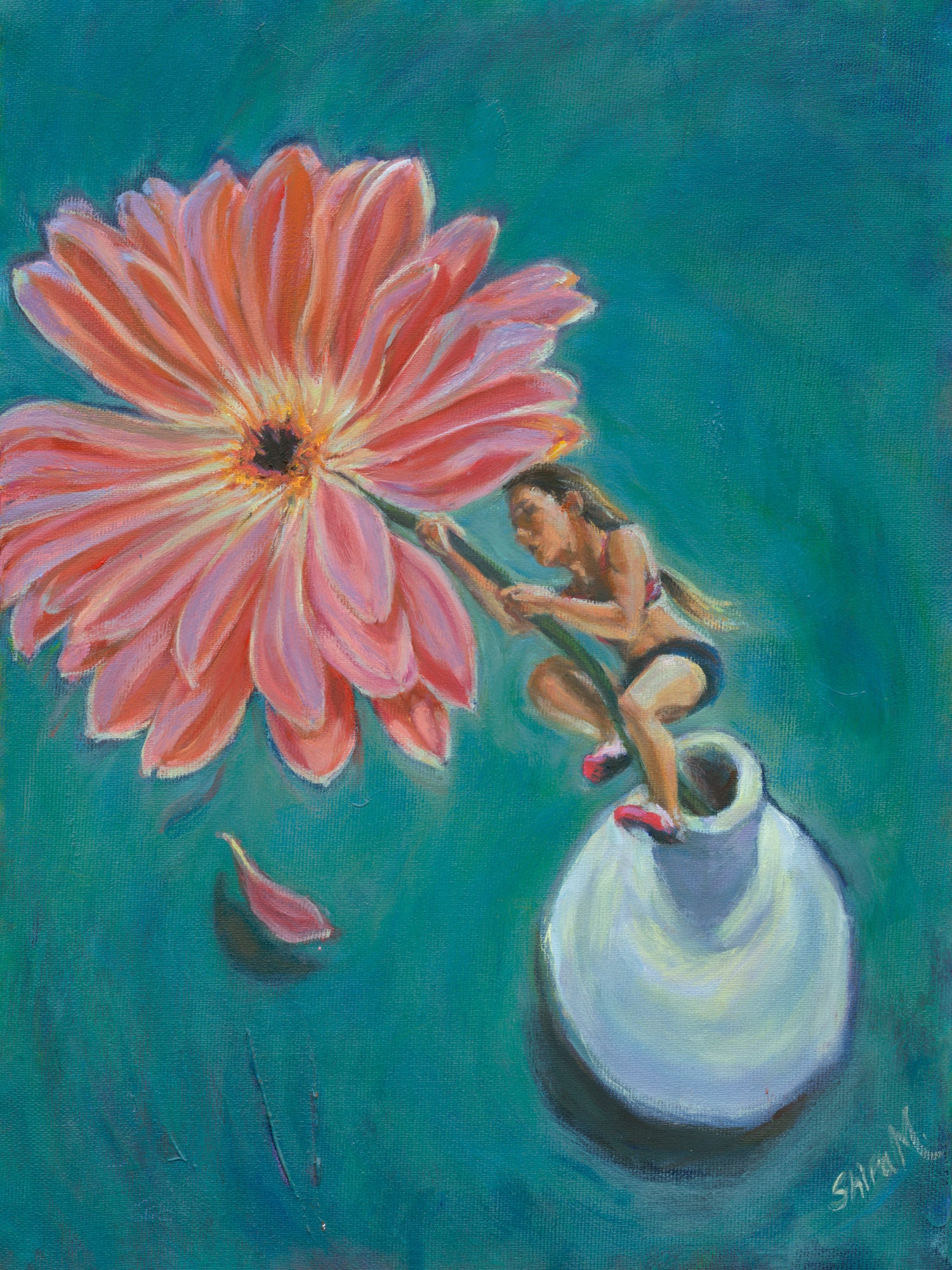 Resilience is a playful little story of courage— a tiny climber, a giant flower, and the brave choice to keep going. Perched on a vase and reaching for a soft pink bloom, the figure reminds us that strength doesn’t have to be loud to be powerful. Sometimes resilience looks like holding on, reaching up, and trusting yourself one small step at a time.